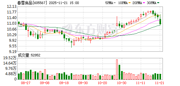 春雪食品11月21日披露,截至11月20日公司股东户数为13782户,较上期(11月10日)减少1093户,环比降幅为7.35%。这已是该公司股东户数连续第2期下降。